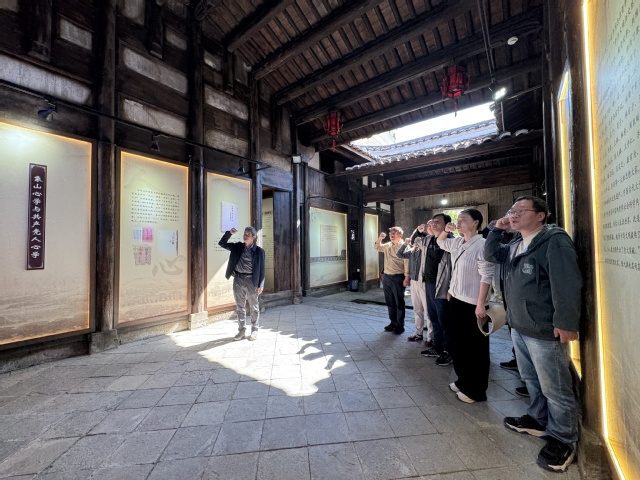 在金溪县陆坊乡象山故里,党员、干部深入了解了百世大儒陆九渊的廉洁思想、廉政事迹,以及心学文化中的廉洁元素,学习了陆氏家族家规家训,进一步强化了严于修身律己、涵养清正家风的意识。随后,学院党委副书记、院长张延飞在共产党人“心学馆”前带领党员重温入党誓词,再一次用铮铮誓言诠释入党初心。在陆氏家风家训馆,党员们深刻感悟陆氏家族“家国同构”的千年家风传承,在陆九渊生平馆,一个个物件、一幅幅题字生动还原了这位思想家的做人、治学与为官之道。