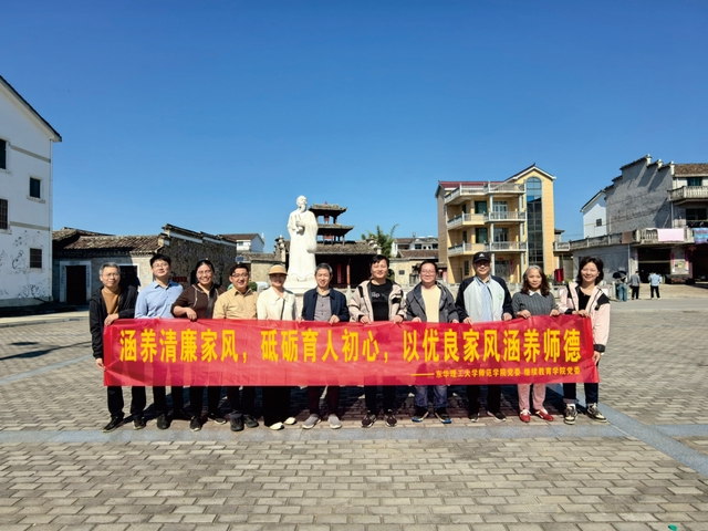 为践行习近平总书记关于家庭家教家风建设重要论述精神,以优良的党风引领师德师风、院风学风,推进作风建设常态化长效化,11月16日,师范学院党委组织领导班子成员、各系室党支部党员代表、青年教师代表前往金溪县陆坊乡象山故里参观学习,引导党员加强家风建设,大力弘扬廉洁文化。